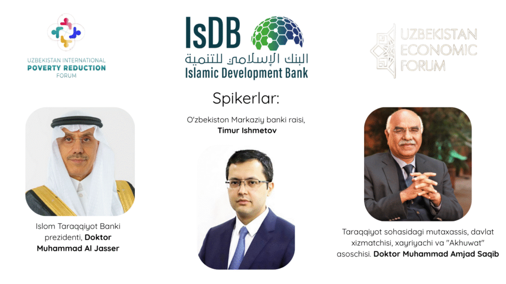 2025-yil 17-sentabr kuni IsDB O’zbekiston Hukumati bilan hamkorlikda «Qashshoqlikni kamaytirishda islom moliyasining o’rni: yangi imkoniyatlar va yechimlar» mavzusida panel sessiya tashkil etmoqda. Sessiya Islom taraqqiyot banki prezidenti doktor Muhammad Al Jasser ishtirokida 3-Xalqaro qashshoqlikni kamaytirish forumida o’tkaziladi. 2-xonada, soat 11:45 dan 12:45 gacha bo’lib o’tadigan ushbu sessiyada islom moliyasi vositalari — jumladan, zakot, vaqf va foizsiz moliyalashtirish modellari — qashshoqlikni kamaytirishga qanday yordam berishi mumkinligi muhokama qilinadi. Muhokama zaif qatlamlarning barqaror iqtisodiy imkoniyatlarini kengaytirishga etika va birdamlikka asoslangan moliyalashtirish qanday hissa qo’shishi mumkinligini ta’kidlab, amaliy strategiyalar va muvaffaqiyatli amaliy misollarga qaratiladi.